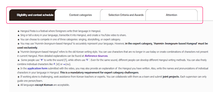 *As the personal information of contest winners belongs to legally required records concerning commercial laws, Hangeul Nuri retains personal information for 5 years in accordance with the relevant laws and regulations of the Republic of Korea.